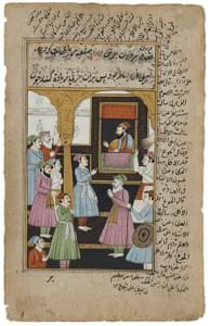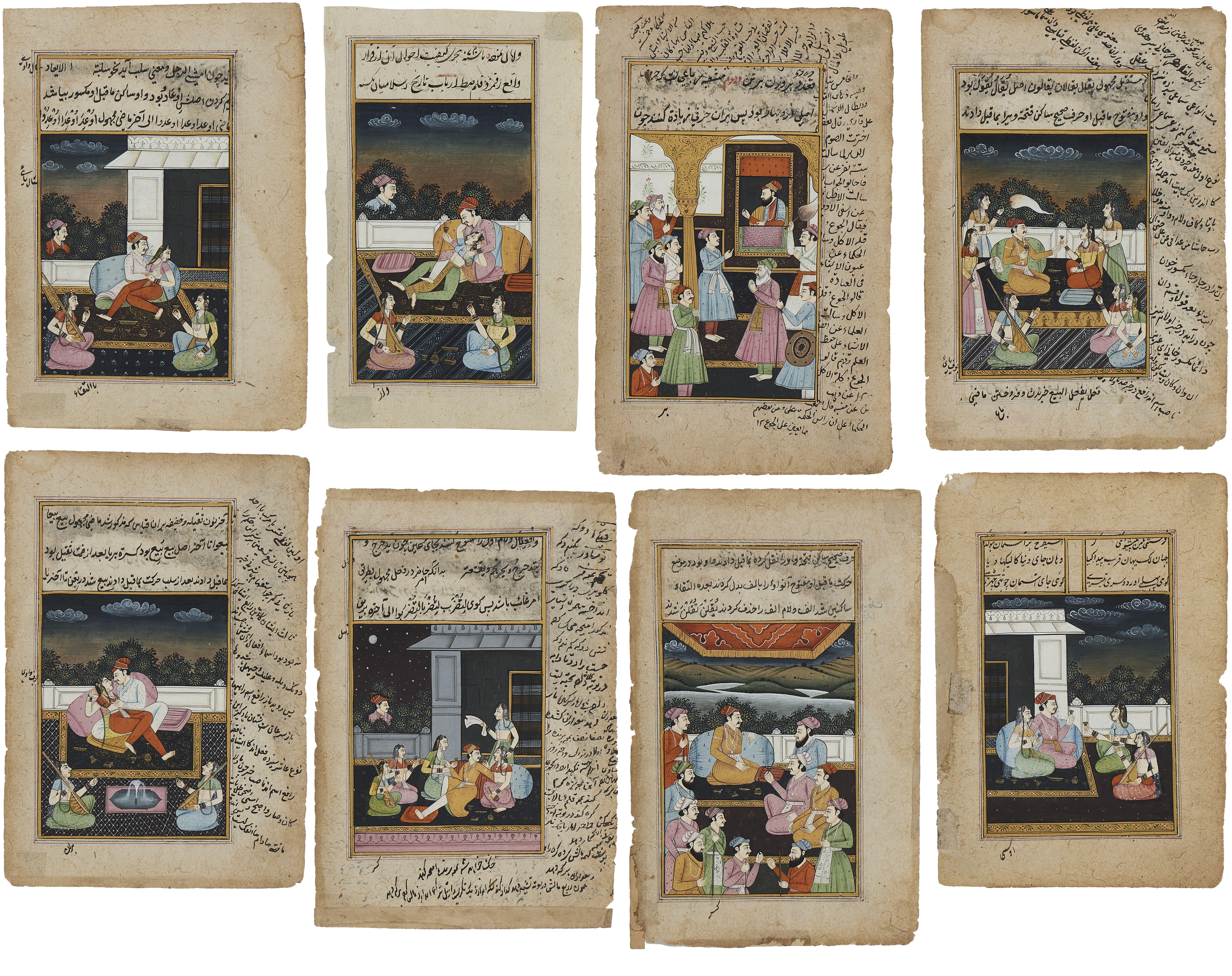 Huit miniatures à décor de scènes animées, gouache et encre sur papier, 21x14 cm