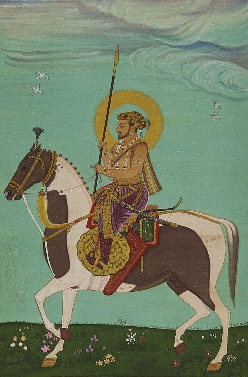 Maharaja à cheval, miniature sur papier, 28x18 cm
