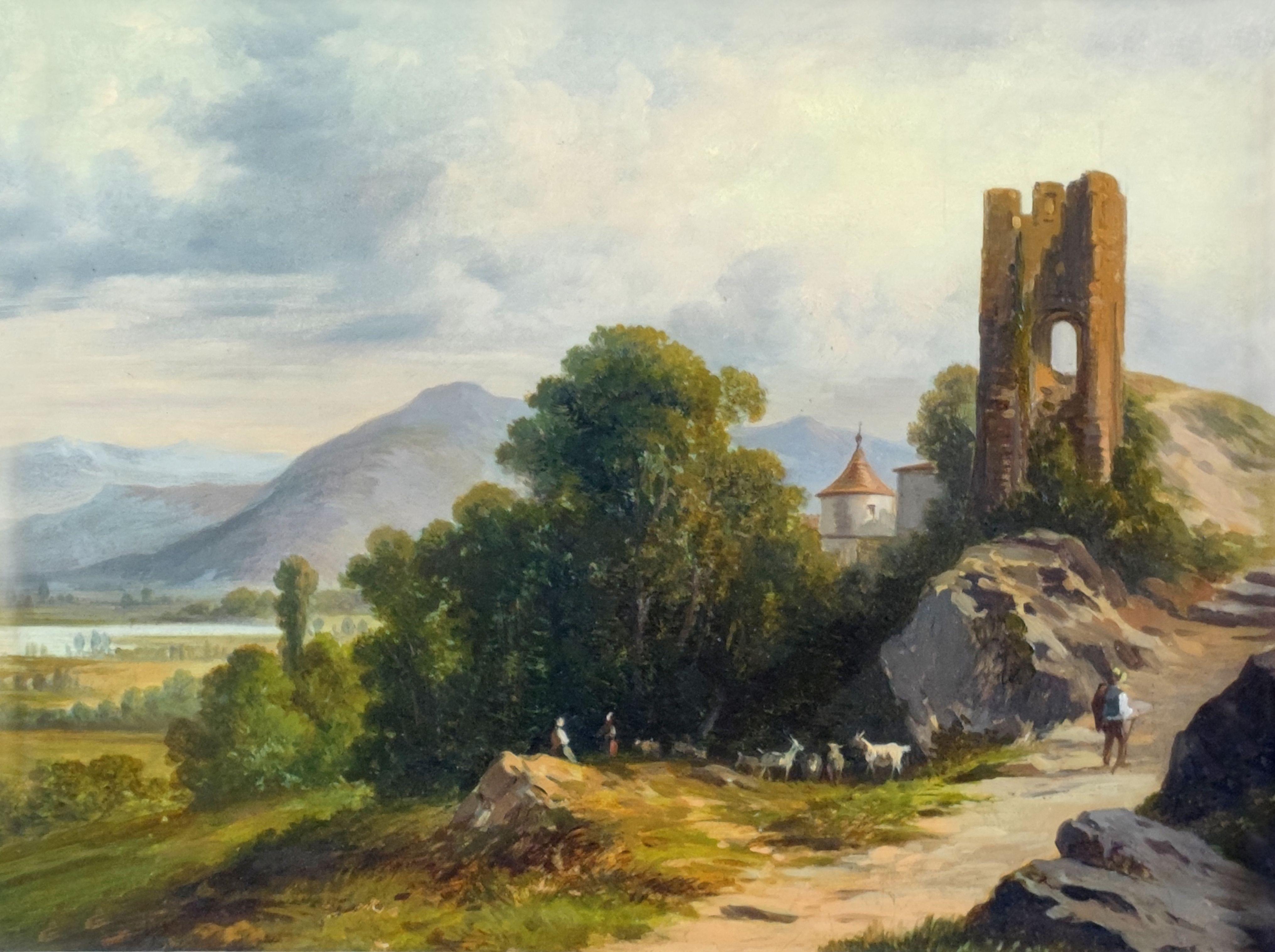 Vues de la baie de Naples, paire de gouaches sur papier, signées...