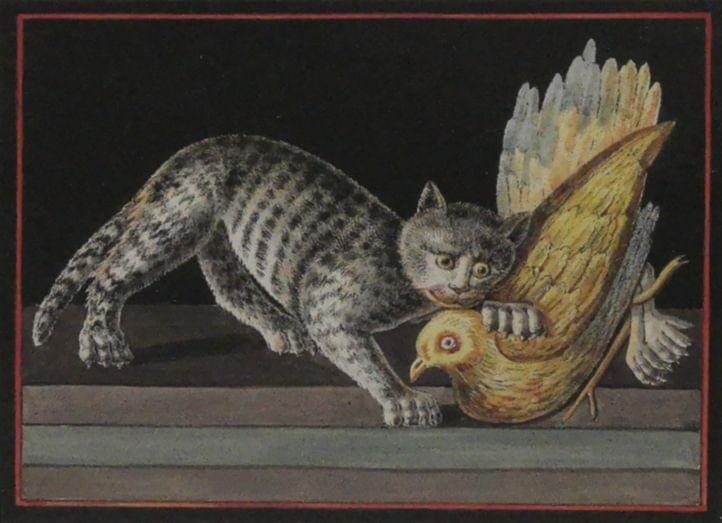 Le chat gourmand, lithographie aquarellée et gouachée, 17x21,5 cm