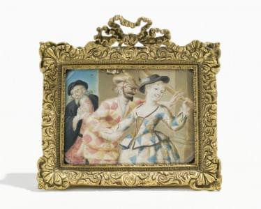 388. Miniature figurant une scène de la Comedia Dell Arte, XVIIIe s