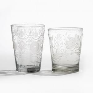 Verre gravé à motifs floraux, l'un daté 1751 et l'autre 1755, 11...