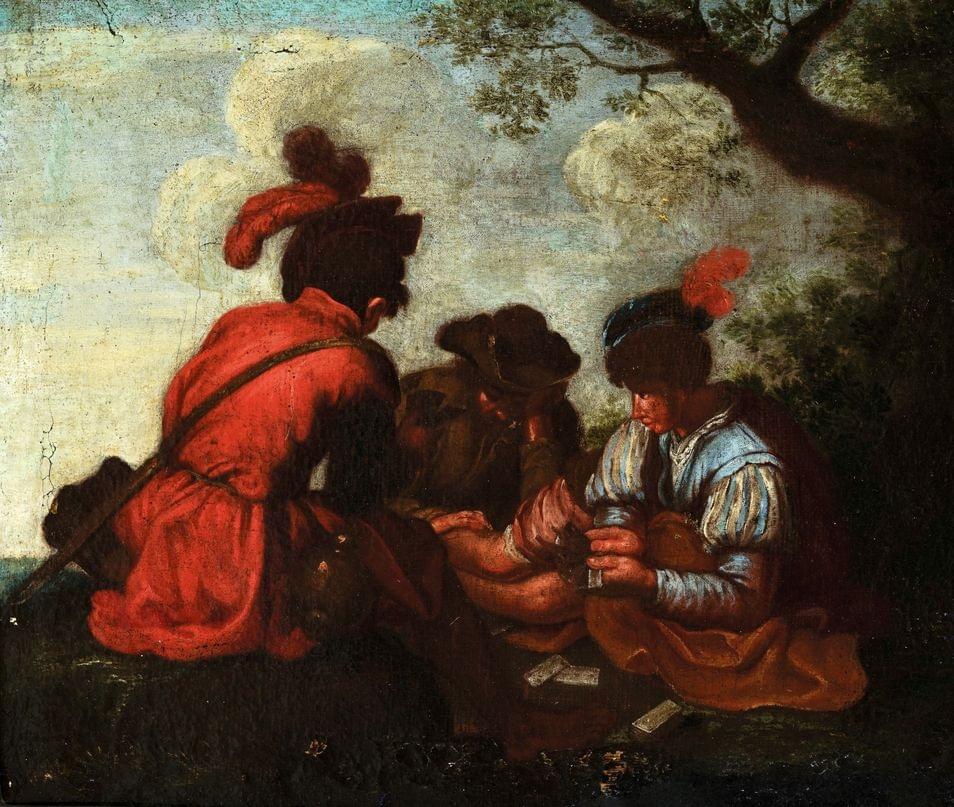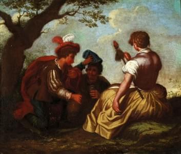 Scène animée près d'un plan d'eau, aquarelle et encre sur papier...