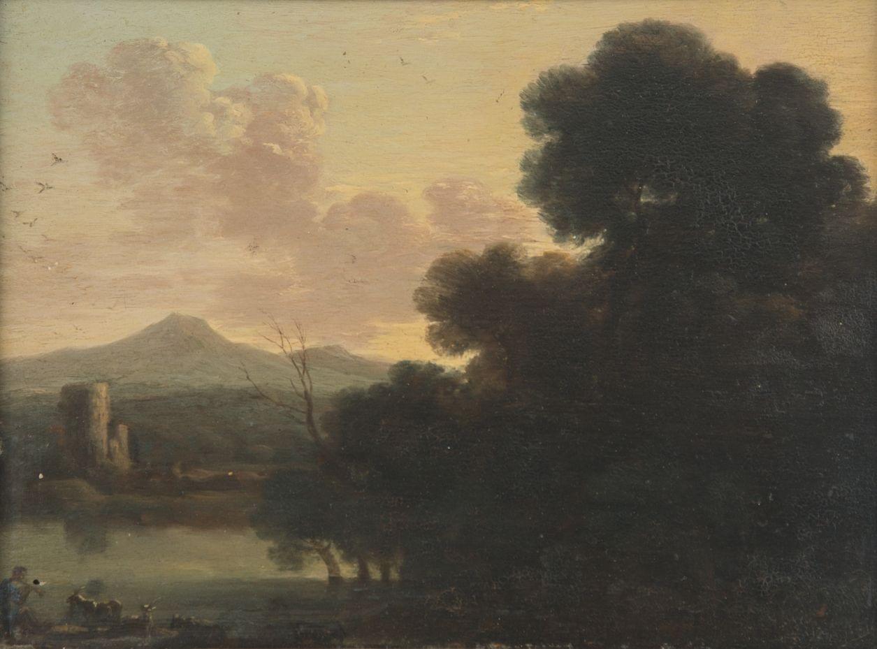 Paysages, paire d'huiles sur panneaux, 21x27 cm (ancienne attribution au dos de Adrian van der Cabel)