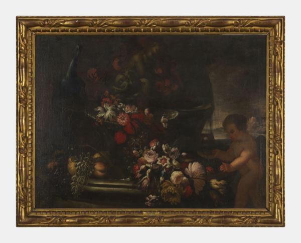 Paire de natures mortes au coing et à la grenade, huile sur toil...