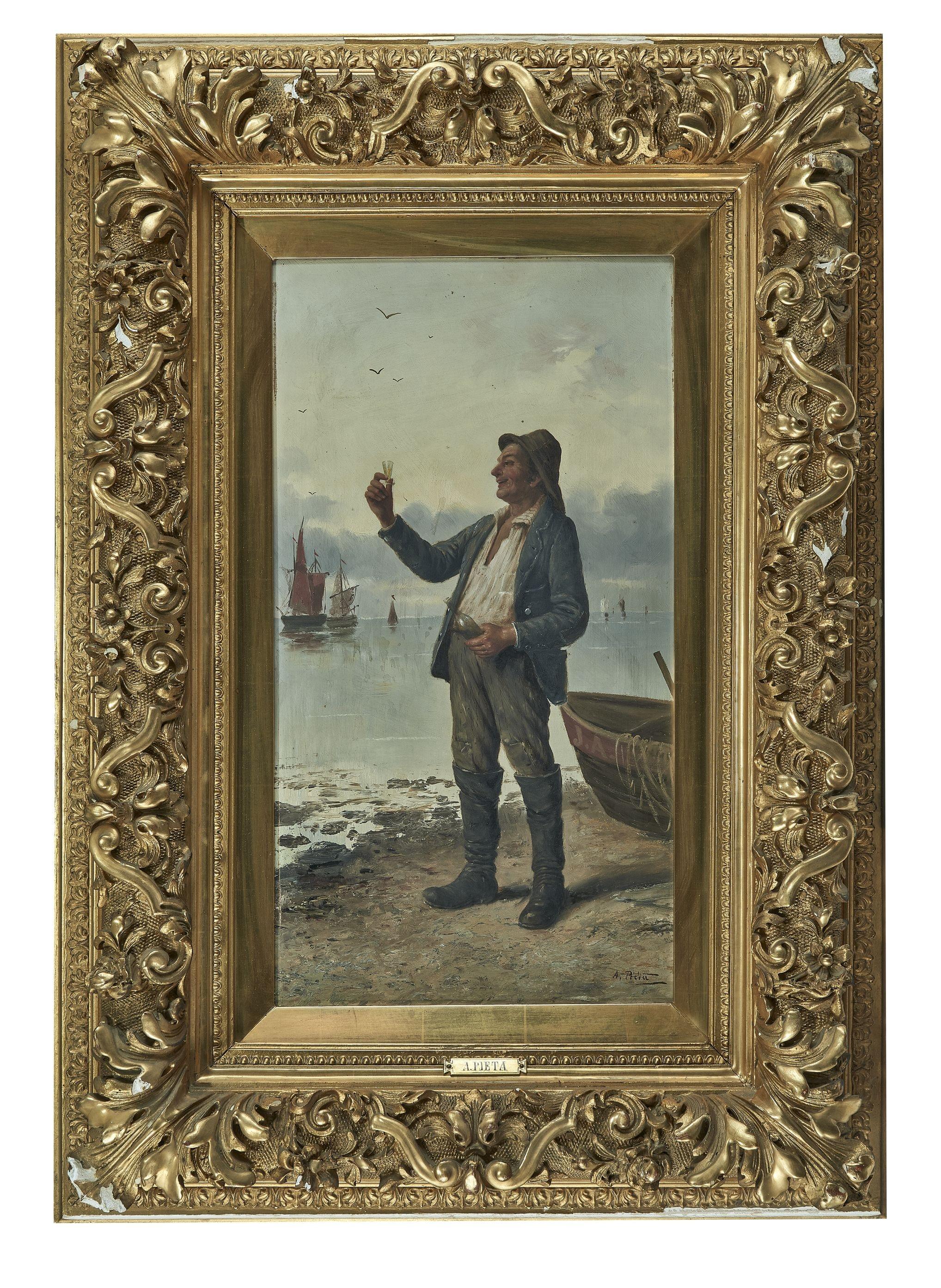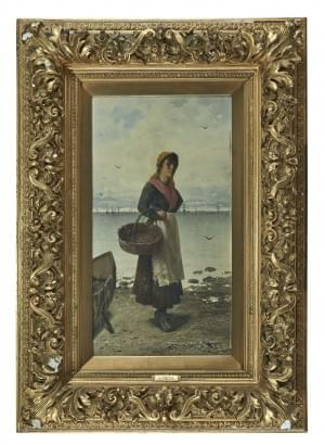 Couple de pêcheurs, paire d'huiles sur panneaux, 47x25 cm