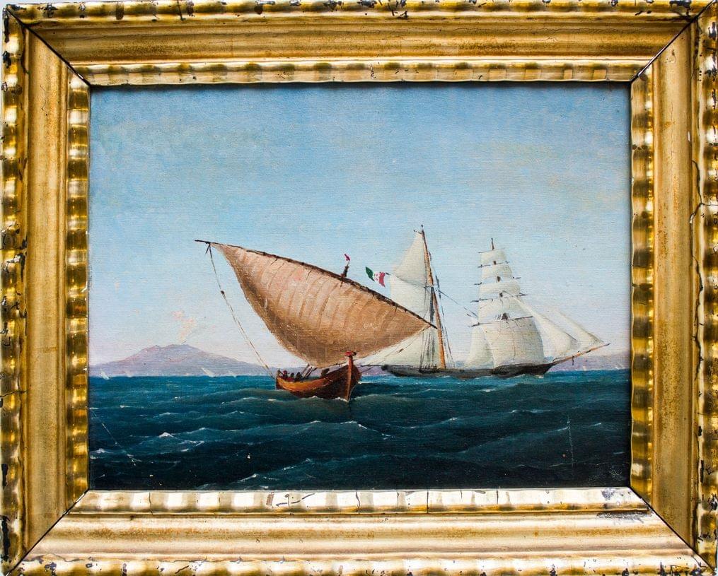 Voiliers au large de Naples, huile sur toile, 23x31 cm