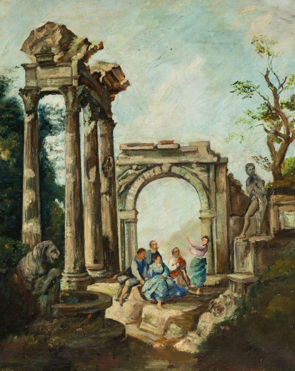 Paysage fabuleux, huile sur panneau, non signée, 16x22 cm