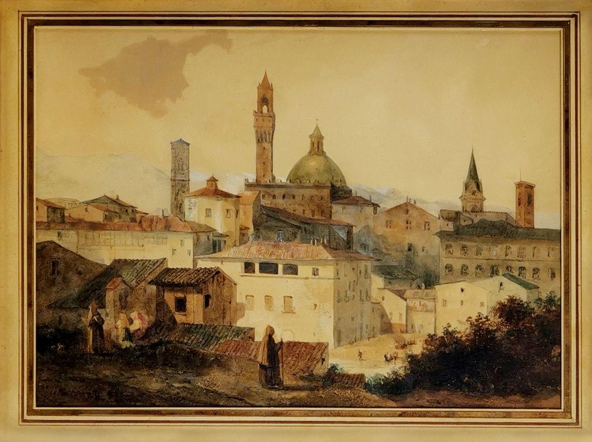 Vue de Florence, aquarelle sur papier signée signature Oscar Gui Jm non identifiée, aquarelle sur papier, 19x27 cm