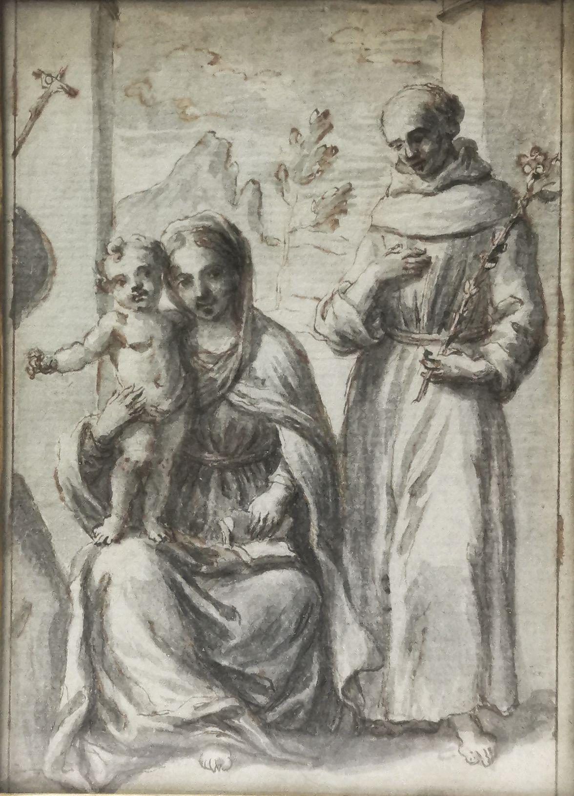 Vierge à l'Enfant et St Antoine, encre et lavis sur papier, 12x8,5 cm