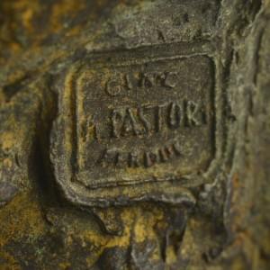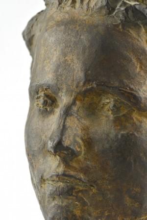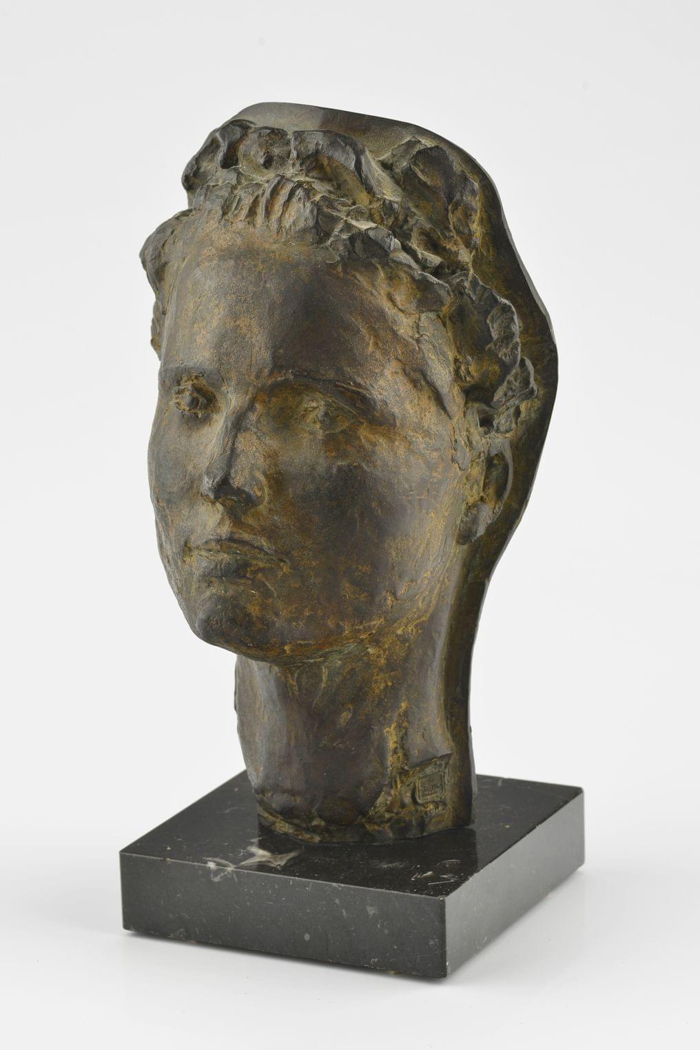 Tête de femme, bronze à patine nuancée, daté 03-45, cachet de fondeur "cire perdue M. Pastori - Genève", socle en marbre noir, H 26 cm