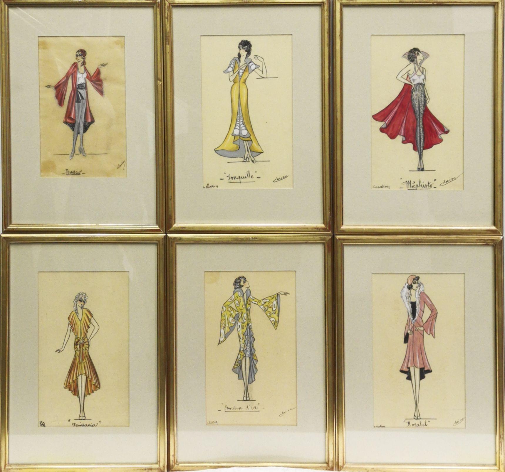 Suite de six études de costumes, gouache sur papier, portant l'annotation "Fait par Poupette Vergez, août 1927", 20x11 cm. Provenance: collection Pernet-Villaverde