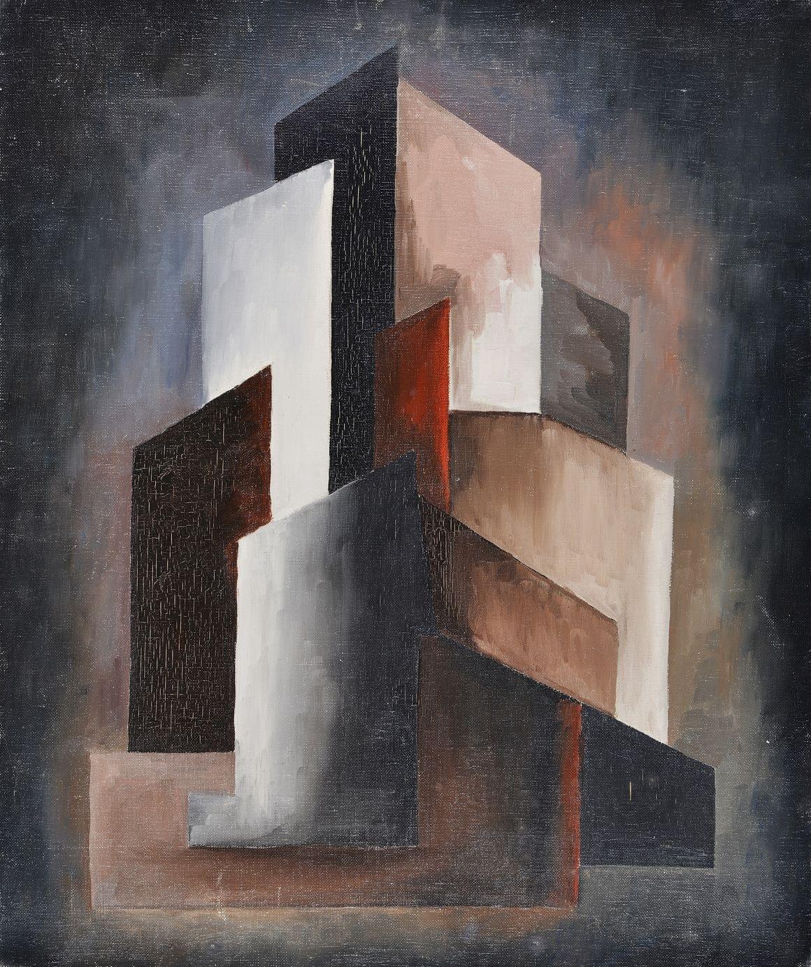 Composition aux formes géométriques, huile sur toile, 55x46 cm
