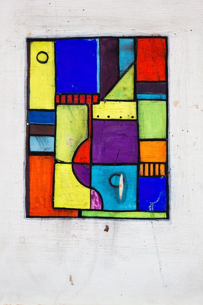Composition abstraite sur fond blanc, huile sur carton, 29x20 cm
