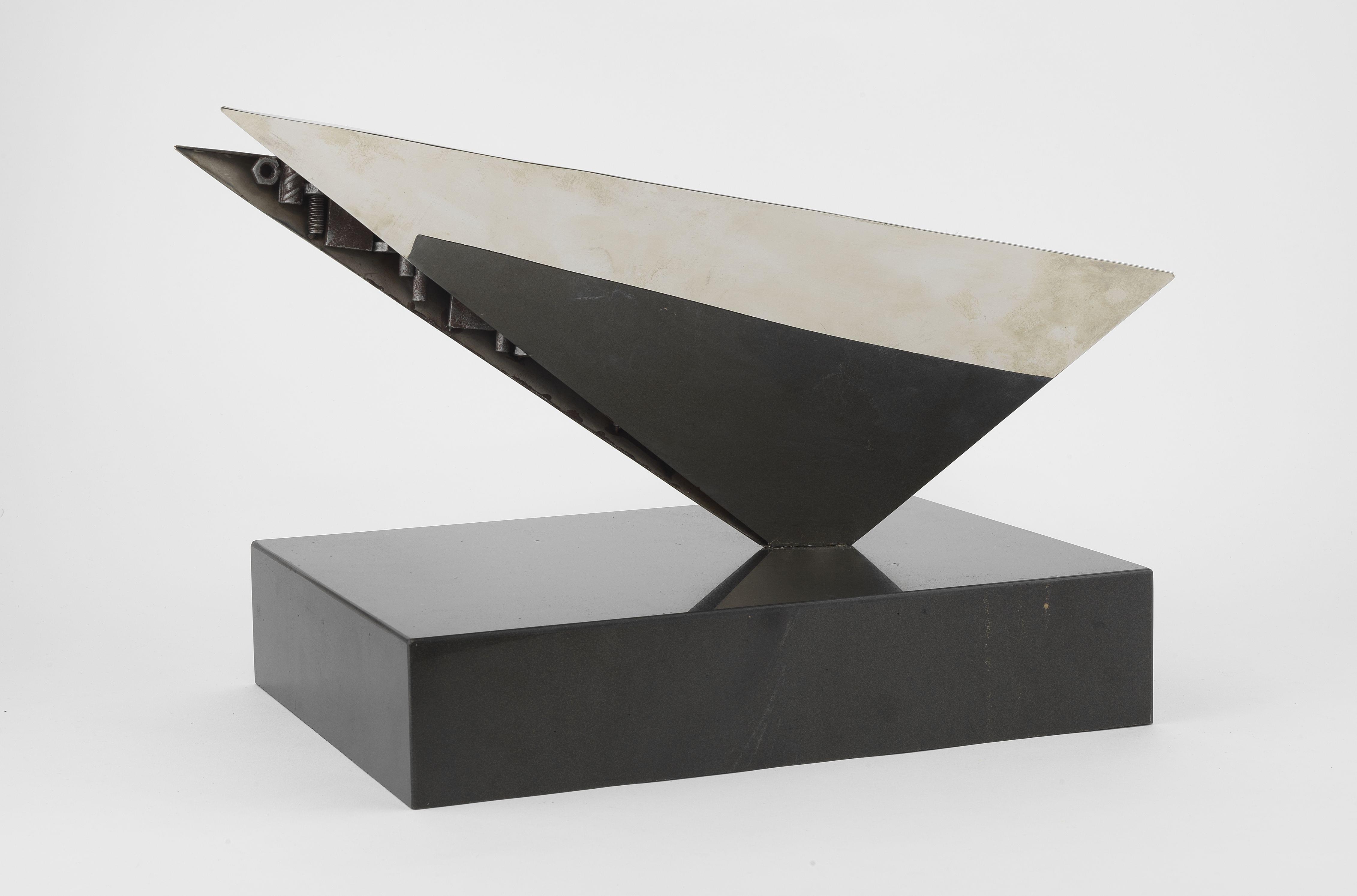 Sculpture abstraite, aluminium, acier et résine, L 48 cm