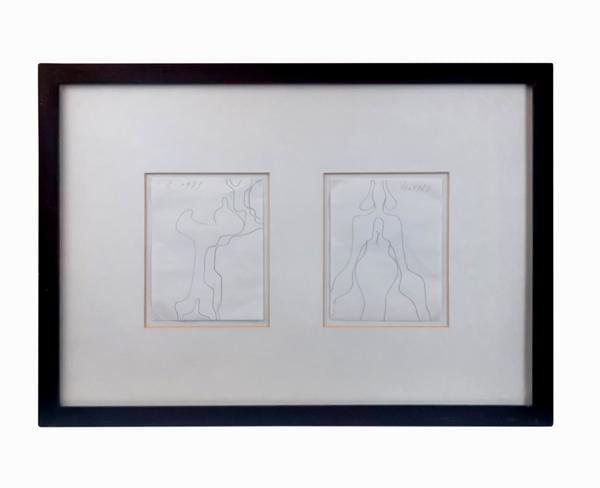 Deux silhouettes, deux mines de plomb sur papier dans un même cadre, 13x10 cm. Provenance: collection Marisa Perret-Rezzonico