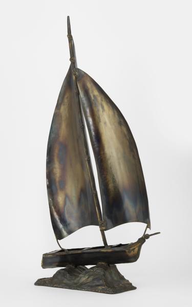 Sculpture figurant un bateau, métal soudé, signature non identifiée, H 79 cm. Provenance: Collection Prince et Princesse de Savoie. Provenienza: Collezione Principe e Principessa di Savoia