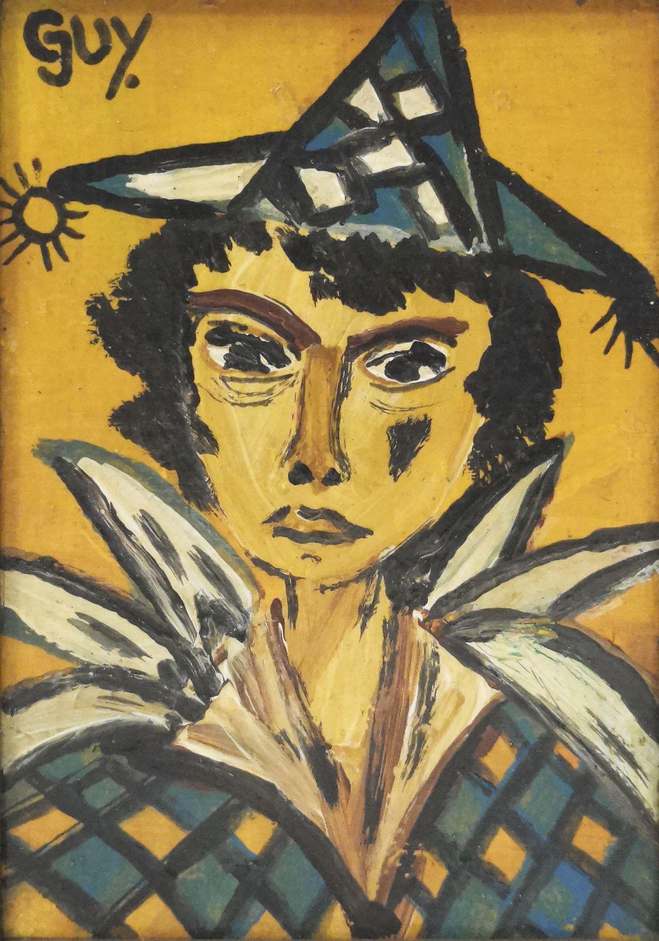 Arlequin, huile sur toile marouflée sur bois, signée, 10x7 cm