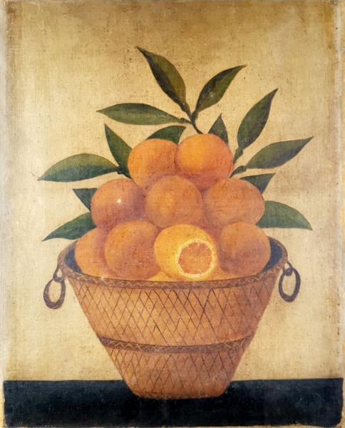 Corbeille de fruits, paire d'huiles sur toile, 37x54 cm