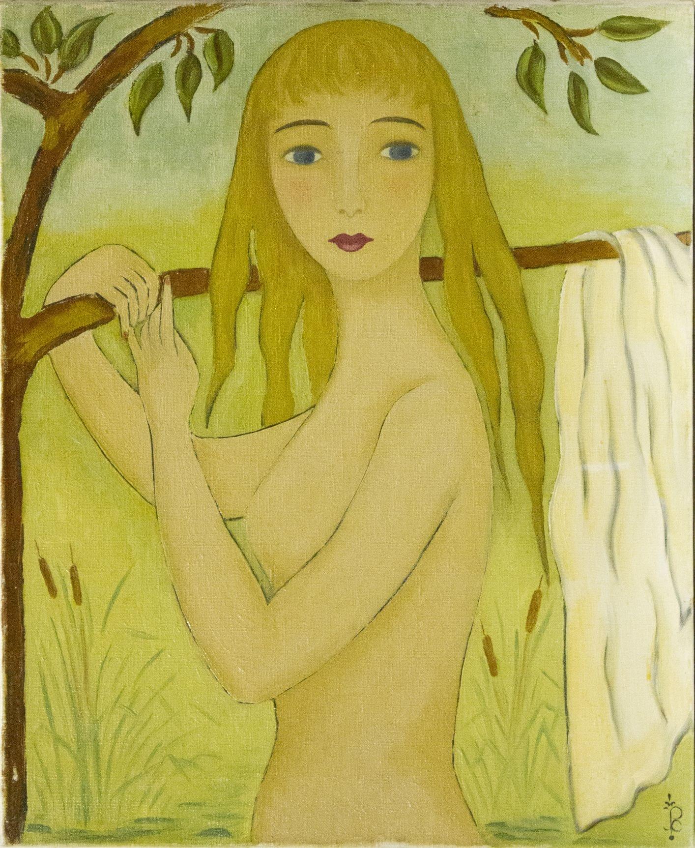 Jeune femme nue, huile sur toile, monogrammée, 46x38 cm