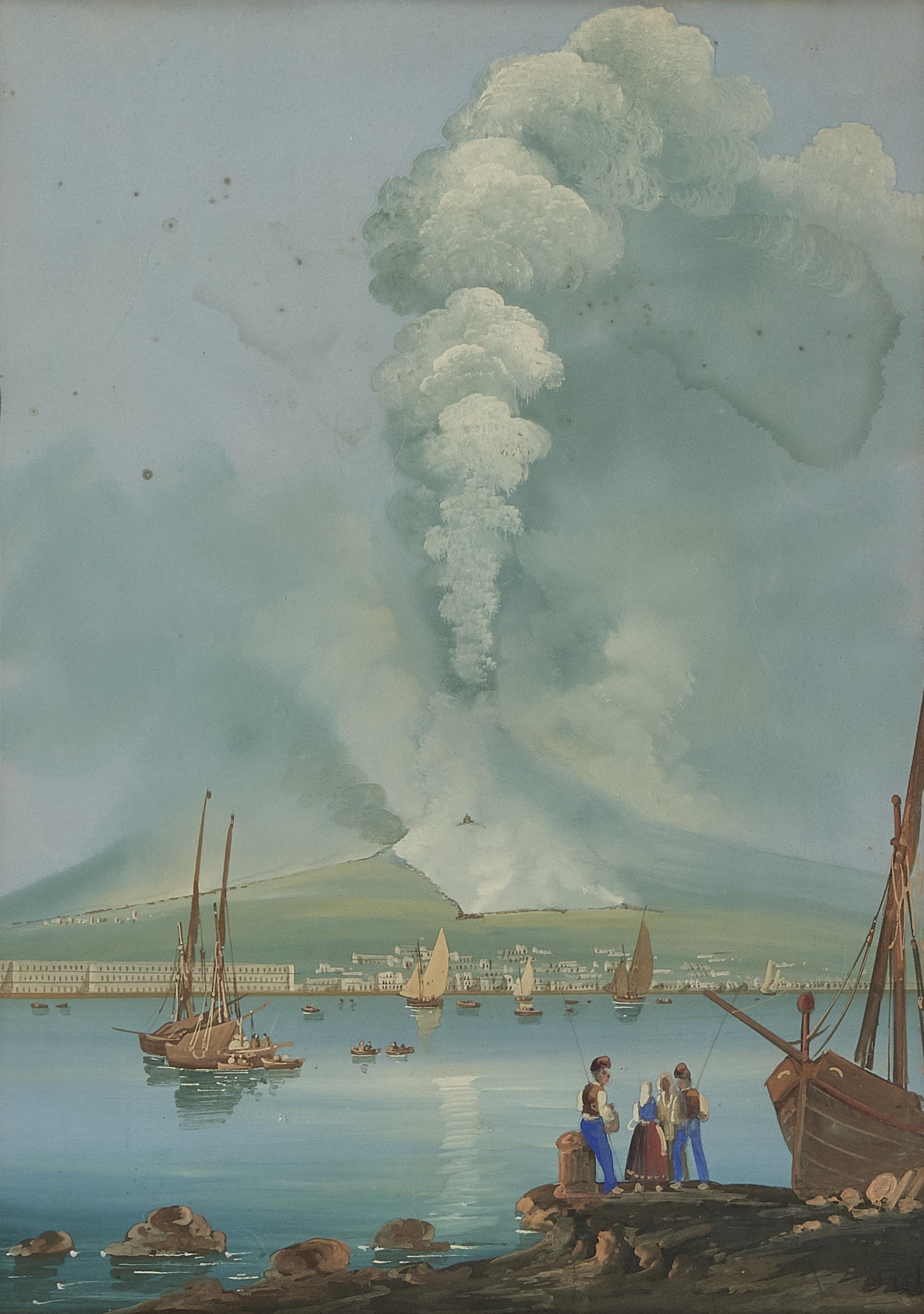 Vésuve en éruption, gouache sur papier, 43x30 cm