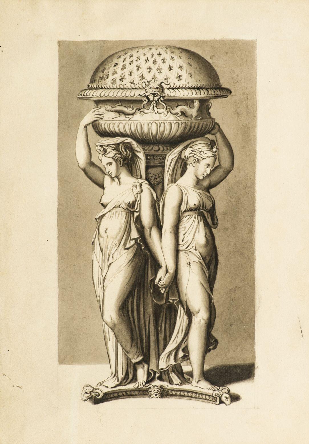 Projet de centre de table, lavis d'encre sur papier, 36x26 cm