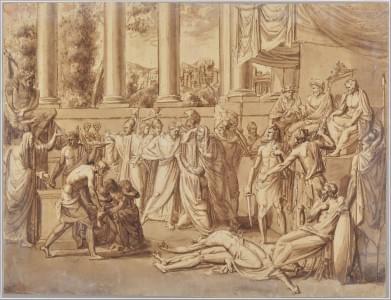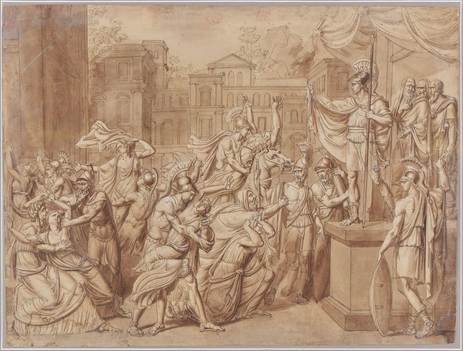 Scènes antiques, paire de lavis sur papier, 44x59 cm