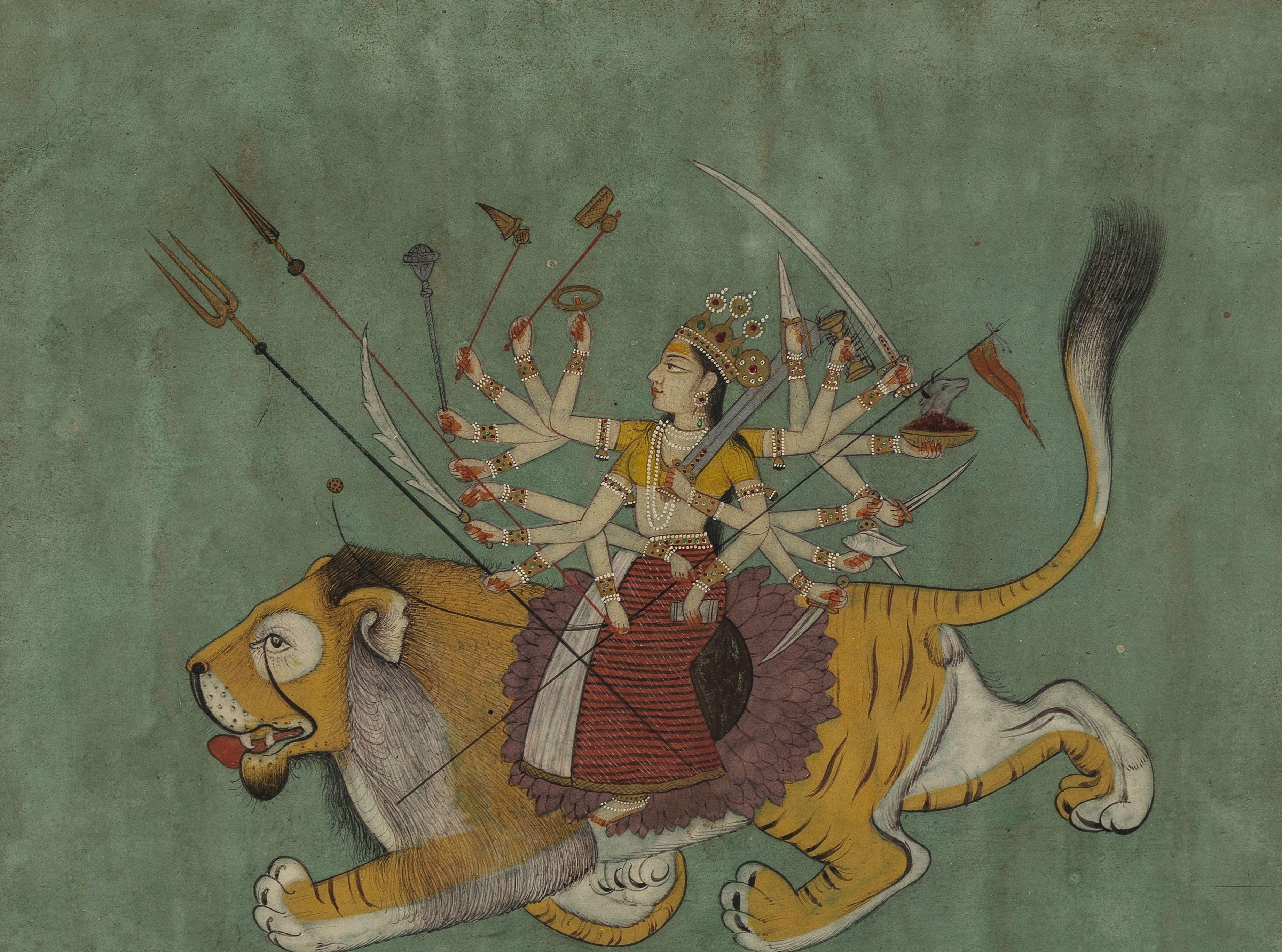 Durga sur un lion, gouache sur papier, 21x25 cm