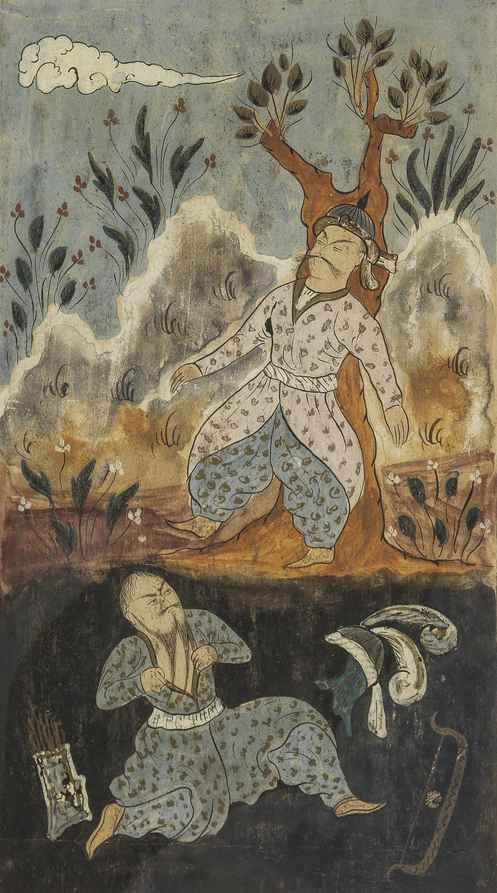 Scène de combat, encre et gouache sur papier, 18x10 cm