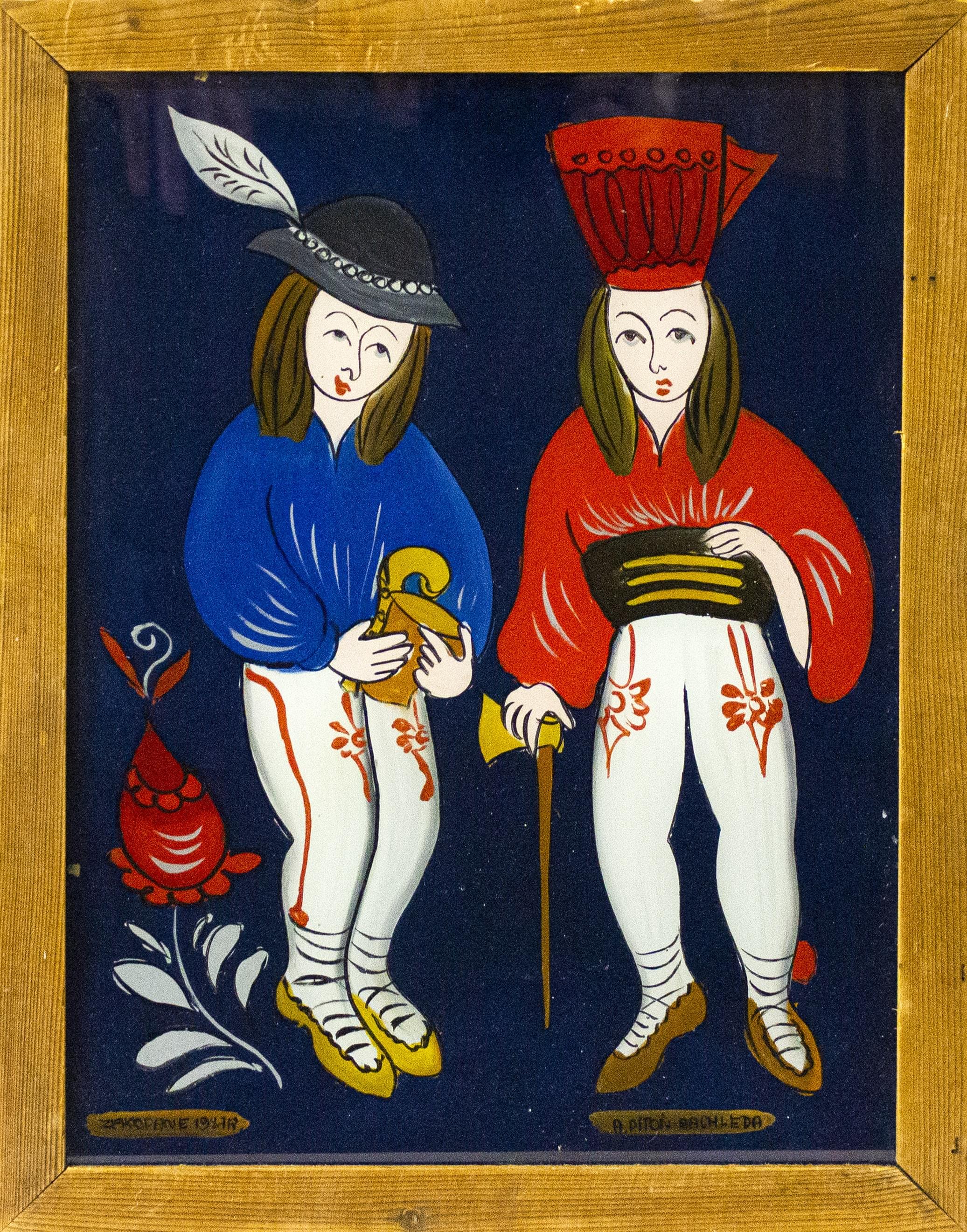 Portrait de deux femmes, peint sur verre, 39x28 cm