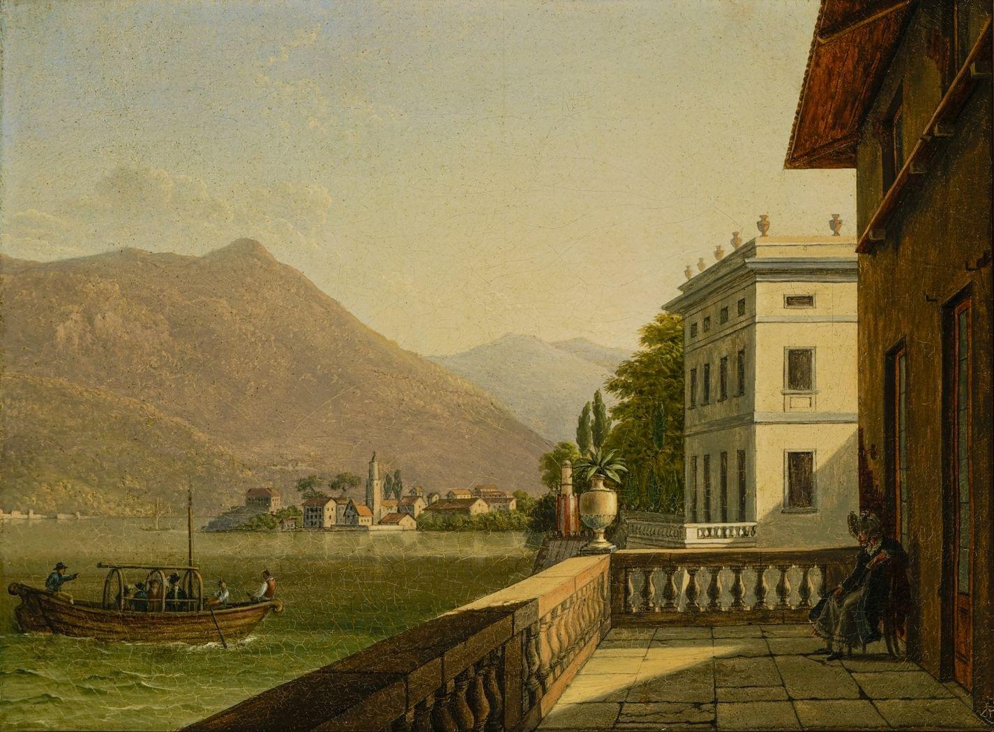 Terrasse près du lac, huile sur toile, 22x29 cm