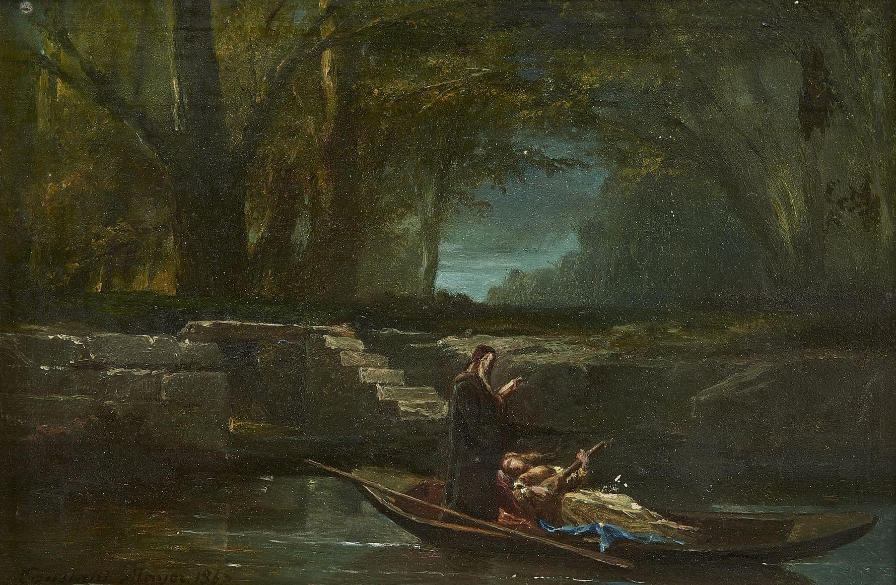 L'Embarquement, huile sur panneau, signée C Meyer, 15x22 cm