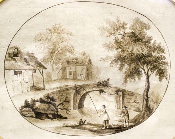 Au bord de la rivière, lavis d'encre sur papier, 16x20 cm