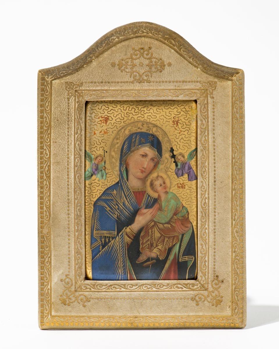 Vierge à l'enfant, or et peinture sur porcelaine, 9x5.5x cm