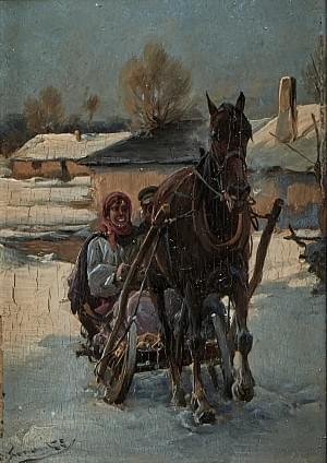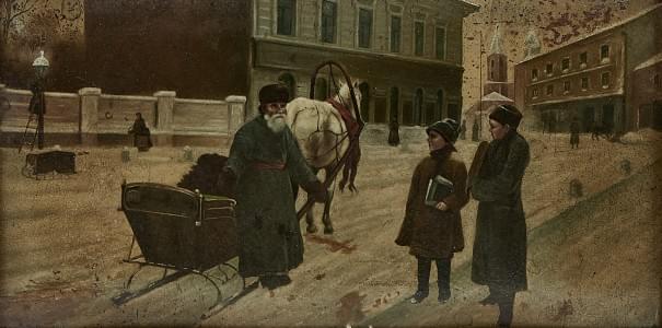 Fileuse, Troïka en ville et Troïka à la campagne, trois laques, de 13x9 à 12x24 cm