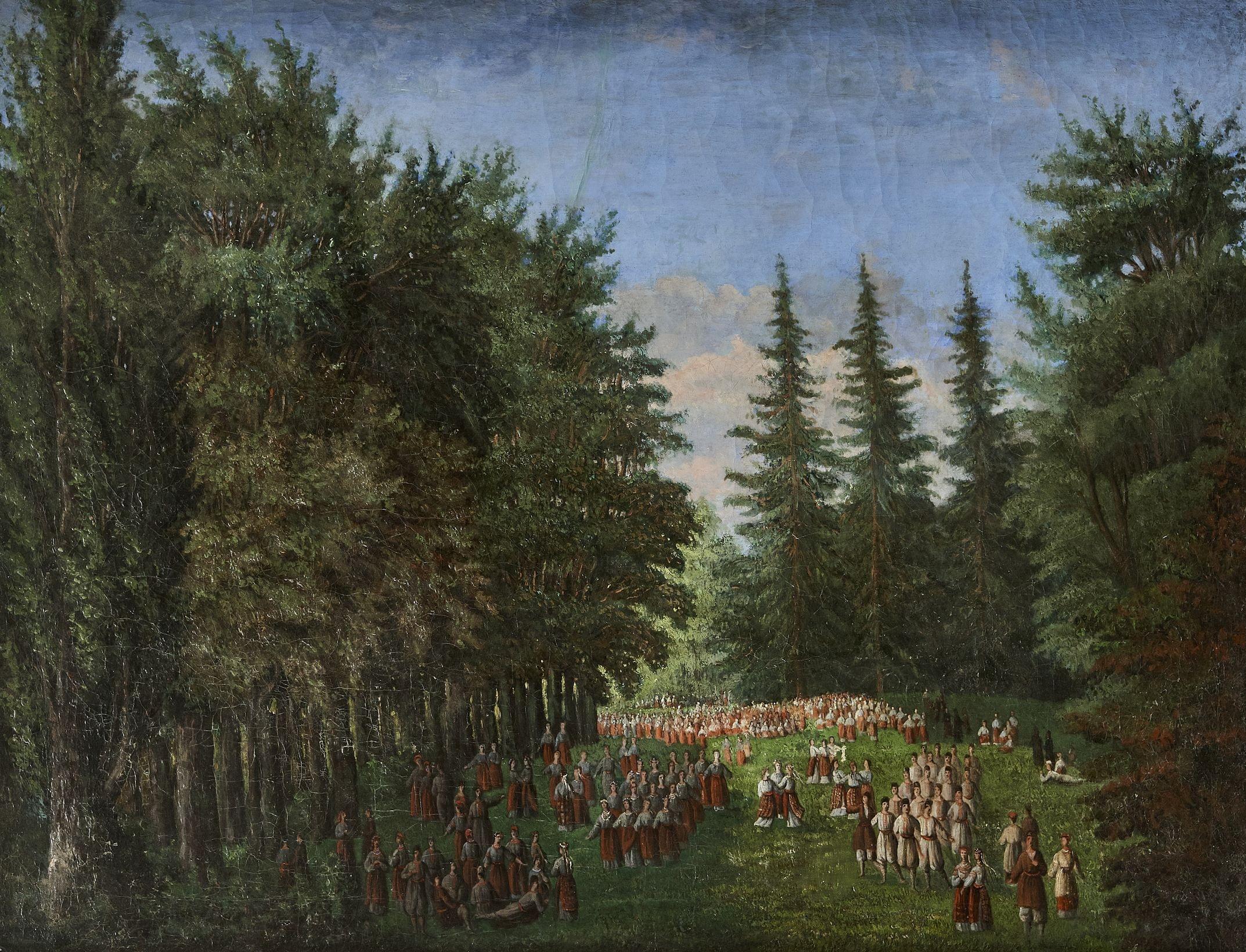 Fête dans la forêt, huile sur toile, 103x134 cm