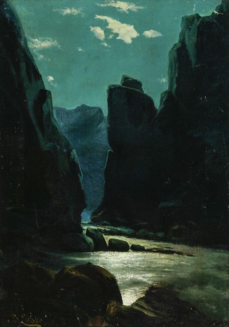 Défilé au clair de lune, huile sur toile, signée V. Envko, 56x40 cm