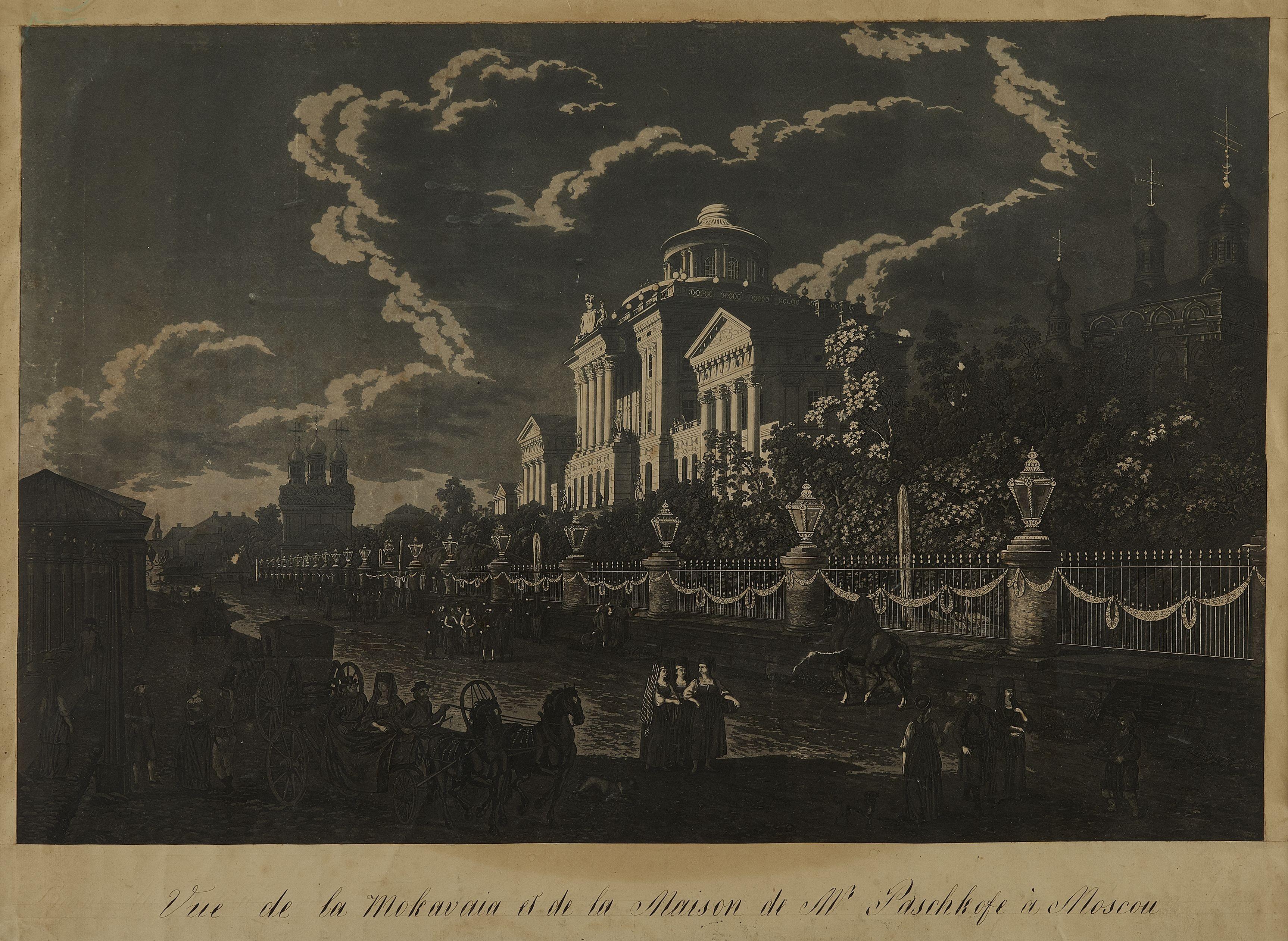 Vue de la Mokavaia et de la maison de M. Paschkofe (Pashkov) à Moscou, estampe, 48x84 cm