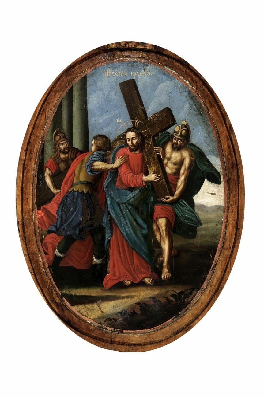Paysan sous la neige, huile sur toile marouflée sur carton, 38x5...