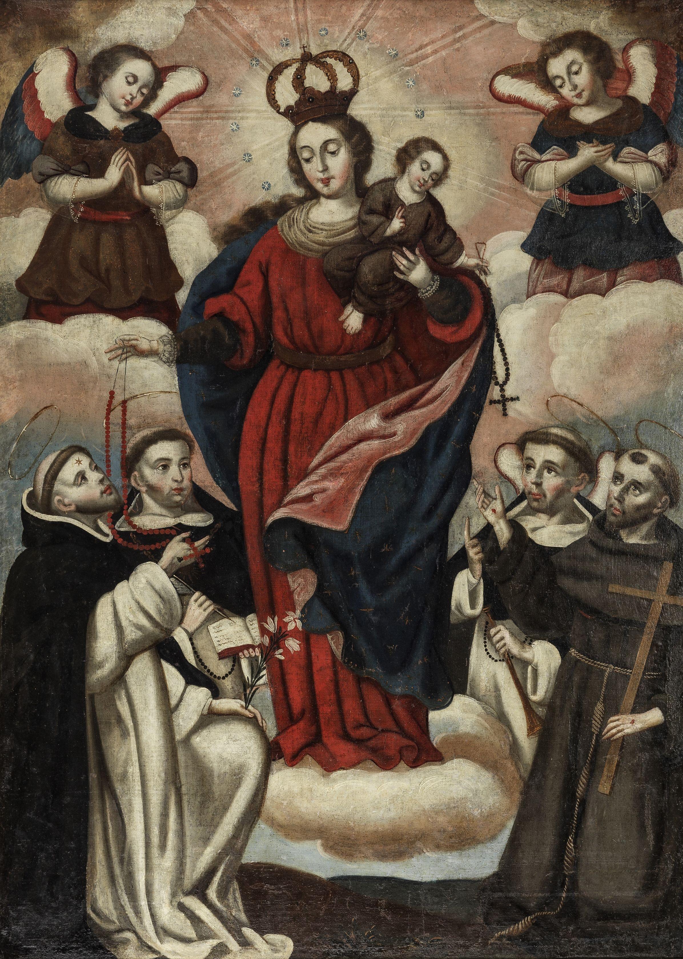 Vierge avec anges, trois dominicains et un franciscain, huile sur toile, 100x73 cm. Provenance: collection particulière, Genève (fin années 1970)