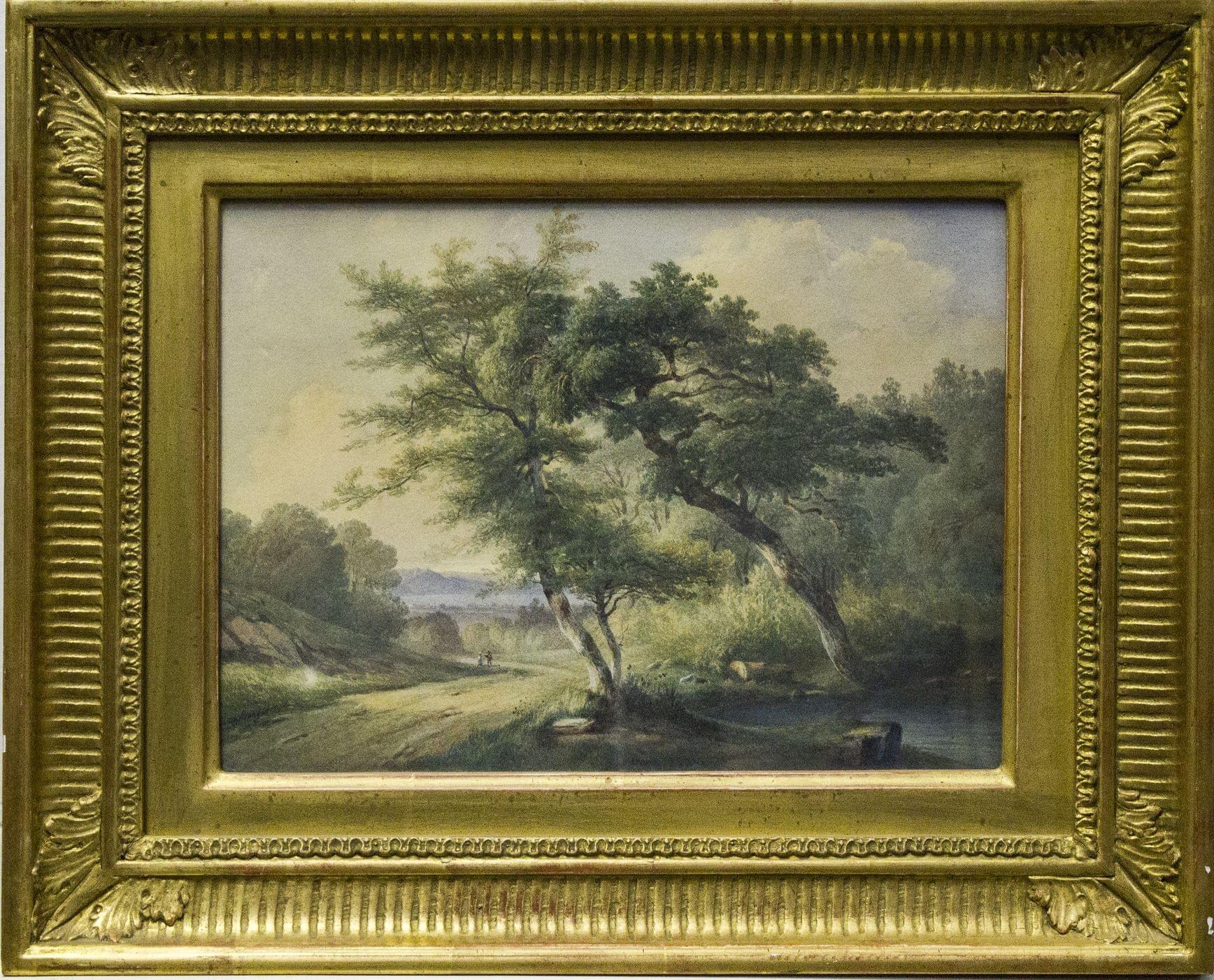 Paysage animé, gouache et aquarelle sur papier, signée Küntz-Berger, 21x28 cm