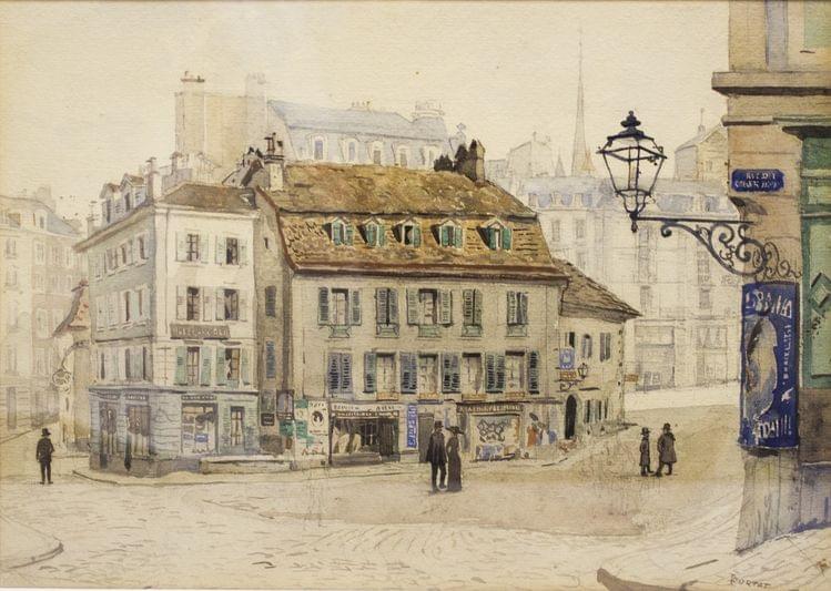 Rue de Lausanne, aquarelle sur papier signée, 23x32 cm