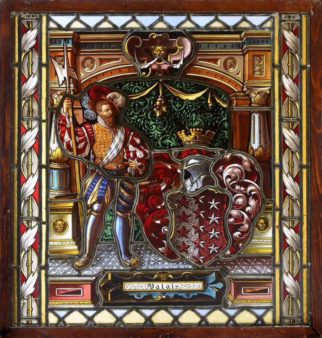 Vitrail aux armes du Valais, verre peint, plomb, 71x67 cm