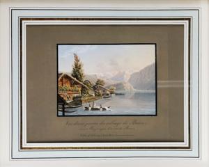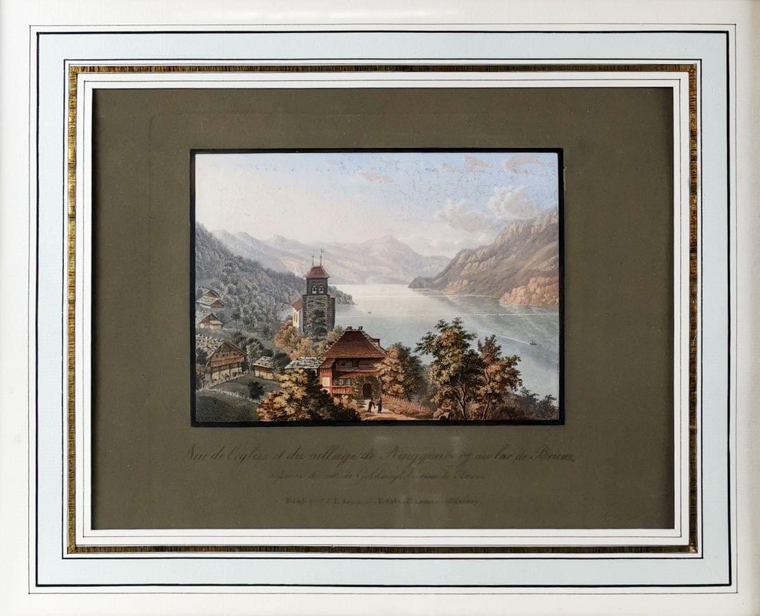 Paire de vues du lac de Brienz, gravures réhaussées à la gouache et à l'aquarelle, 12x16 cm