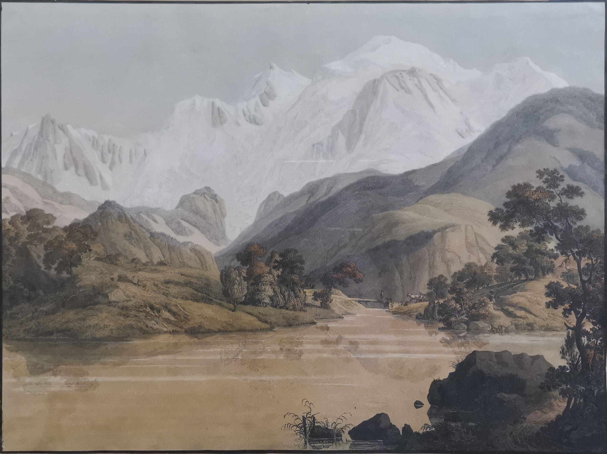 Paysage alpin, gravure aquarellée, 36x48 cm