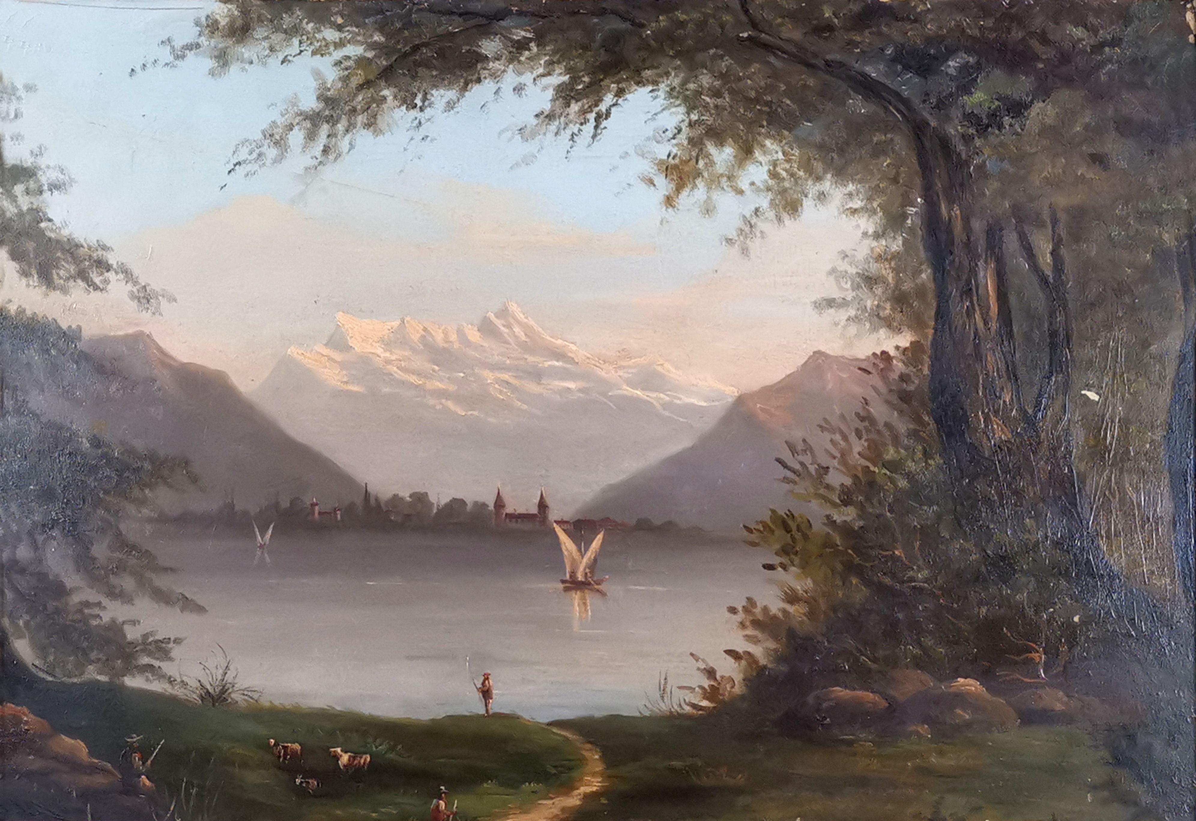 Vue du Léman et des Dents du Midi, huile sur carton, 46,5x67,5 cm