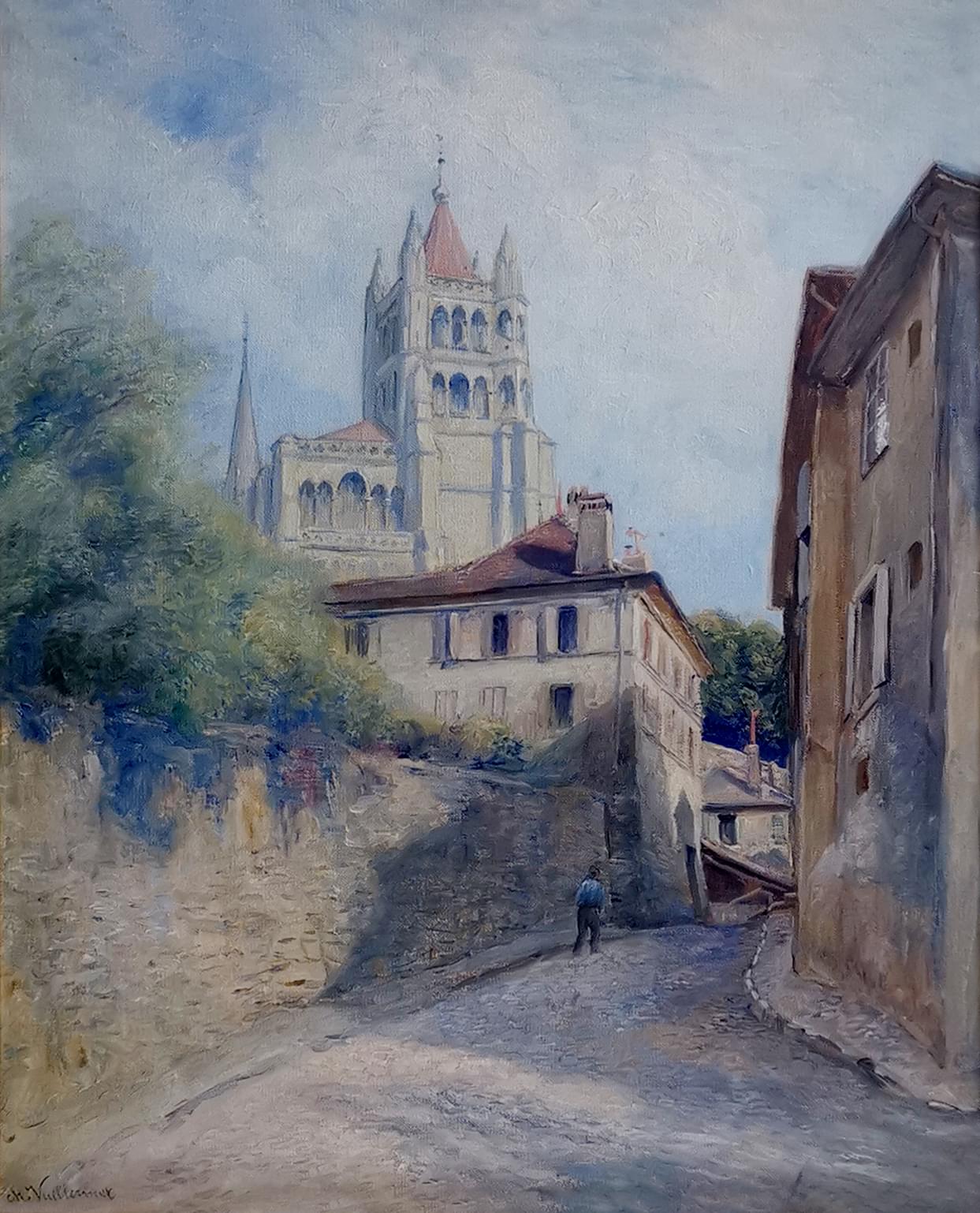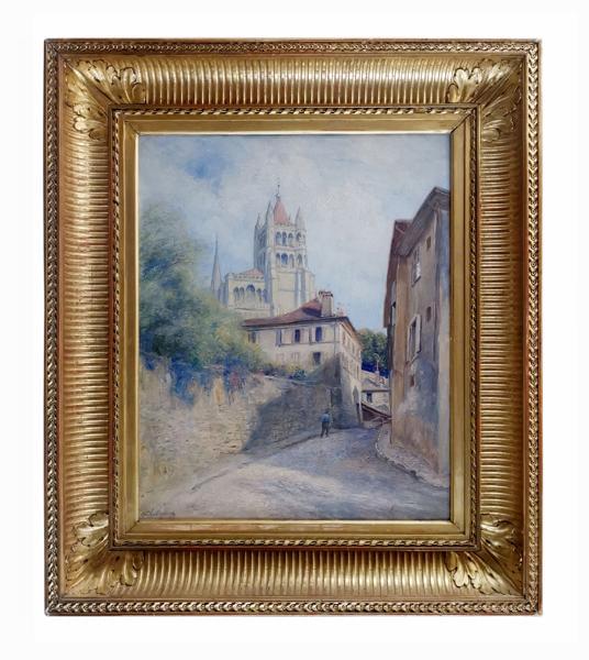 Vue de la cathédrale de Lausanne, huile sur toile, 47x38 cm