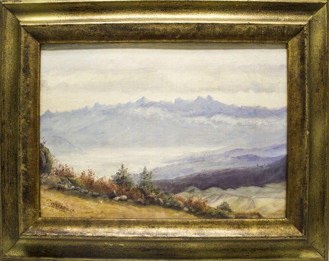 La mer de brouillard et les Alpes, huile sur toile, signée et datée 13, 27x39 cm