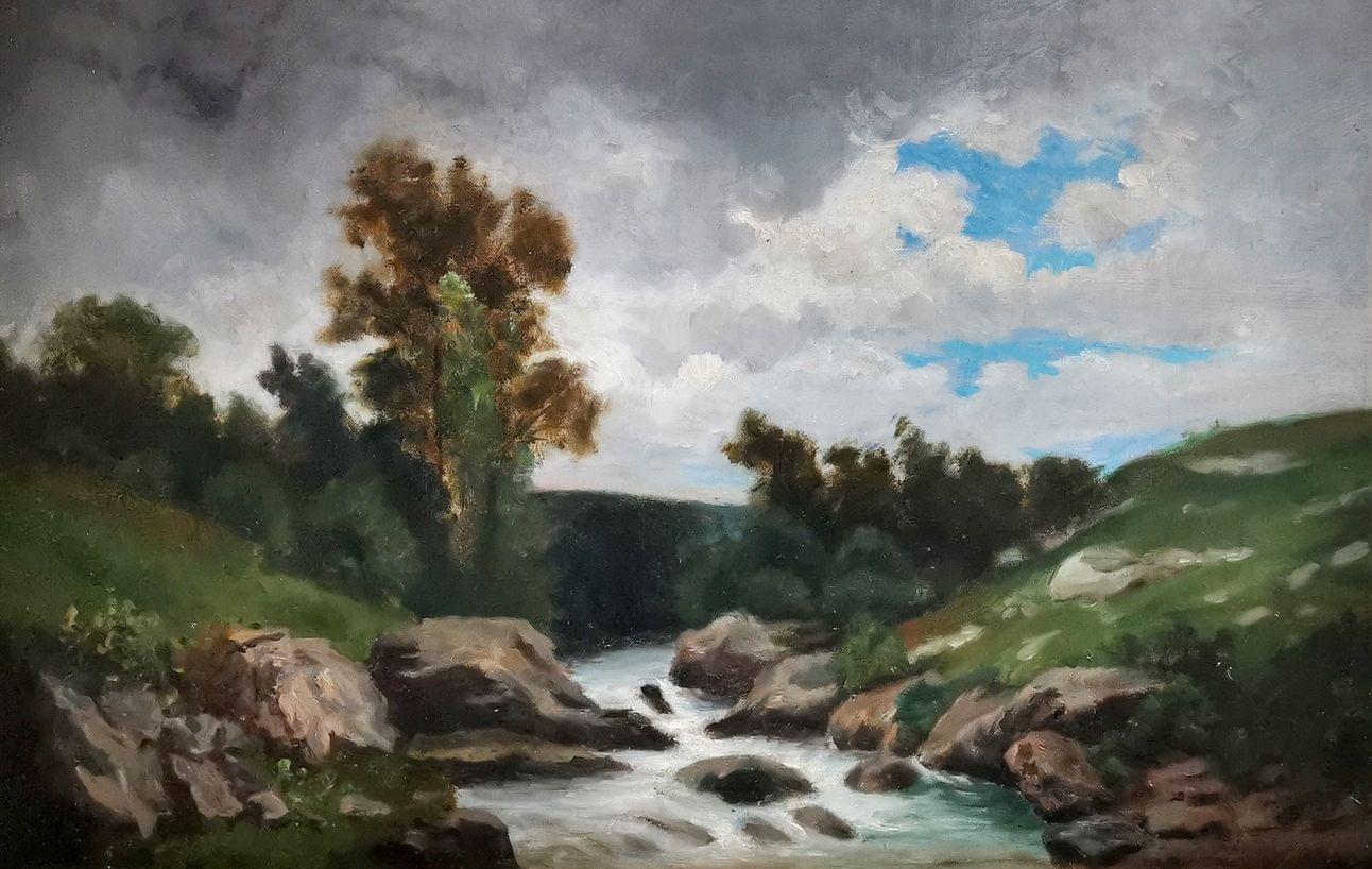 Torrent, huile sur toile, monogrammée, 35,5x55 cm