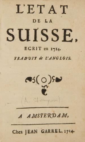 112. HELVETICA. [STANYAN (Abraham)]: L'Etat de la Suisse, écrit en 17...